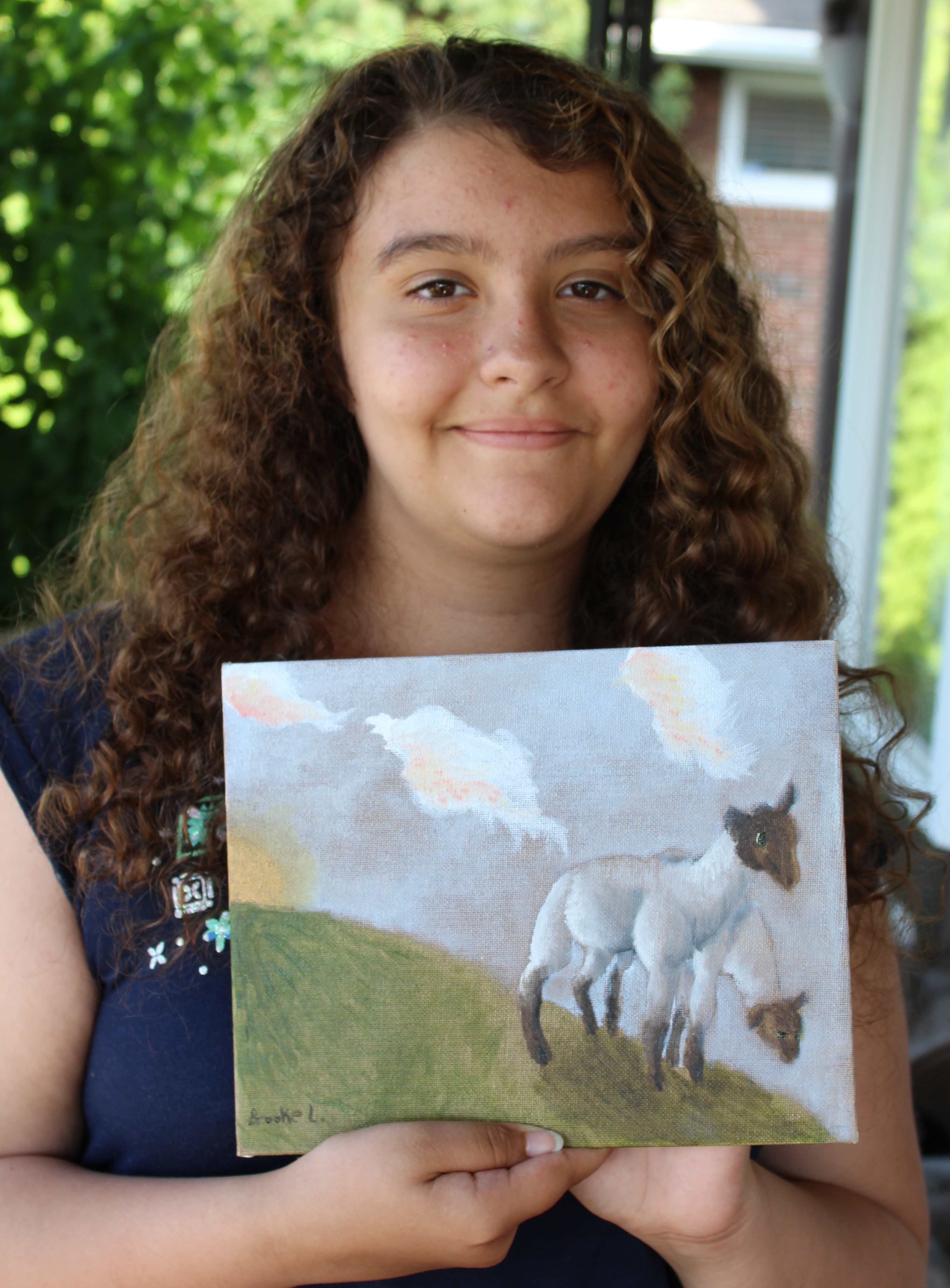 My dear Granddaughter stayed with us for a week so we had several oil painting sessions. She had never before used oils and she did a good job with this image of two sheep on a sunny hillside with clouds. She is better at freehand work than I am. It was fun to hear her tell me that she was able to apply some things I taught her to her computer drawing and painting programs. How wonderful it is to pass on skills to the younger ones and how great it is to watch them develop!