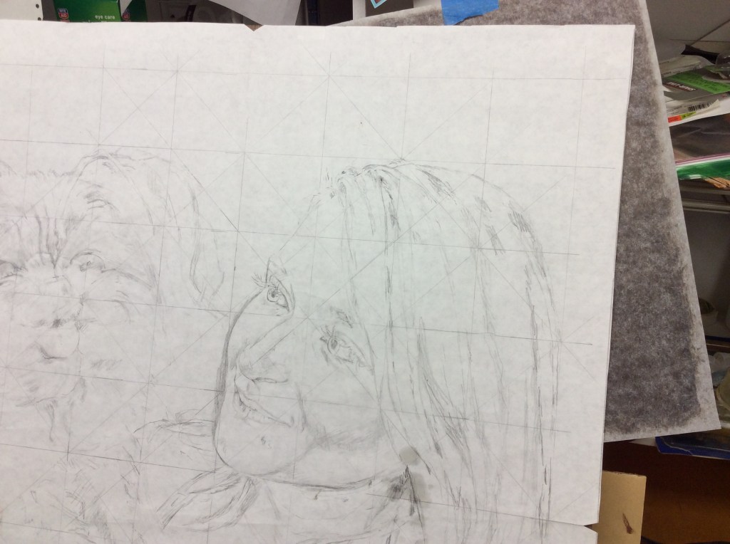 Now look at your original photo or sketch. Starting with any feature, draw on the larger graph a mark in a square or triangle that exactly matches the smaller one, just remember to make it the increased size. If you are careful to follow the pattern and not confuse the placement of your marks, then you proportions and likeness should be good.