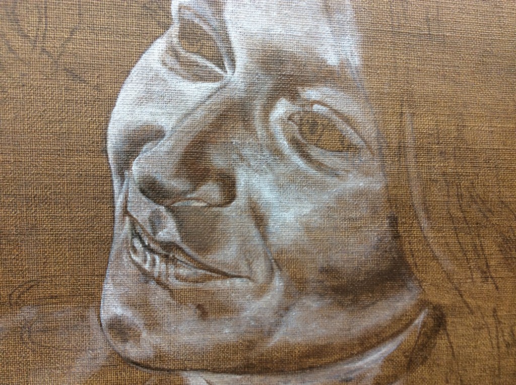 Yes, I have a method, so, you would think this process would follow along the routine steps and I would never get lost. WRONG! Perhaps I just forget something, or maybe I decide to skip a step, or maybe something just doesn’t seem right. I have messed up so badly at times that my only option is to call the mess I have an under painting and drop back to square one. Then again, maybe I don’t know why something isn’t right. What I want you to think about and understand is that you must trust your ability. And, I believe in a higher power and I ask YAH to intervene. This gets me on the right track and I come to understand what move to make next. Believe me, if your flesh tone looks blotchy, do another layer and then another. Each time you paint this face, you get to know it better. What you may not realize is that your brain is learning how to paint suppleness into the skin. You don’t need a teacher except to help the process move along more quickly. What your brain needs is failure and experience. This is how we were meant to learn. Get the point I am making here, please. Your brain is gaining mastery as you try to figure this out. How else could I have learned. I looked and I tried and failed and began to recognize my own improvement. Don’t give up. I am grateful I kept trying.