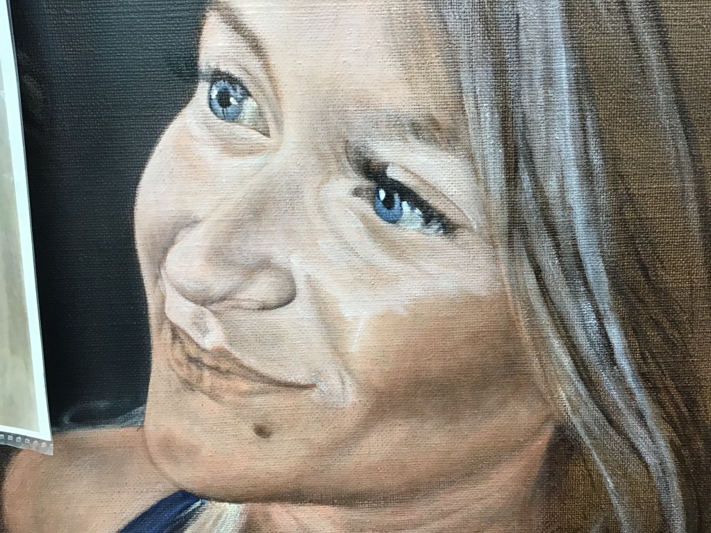 Even so, I am working many hours a day trying to get these works ready in time. First, I will show you the latest work on my grand daughter’ painting.