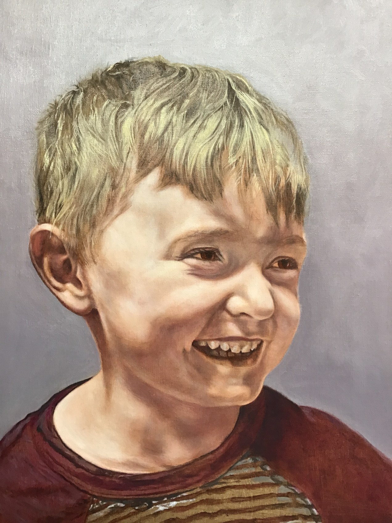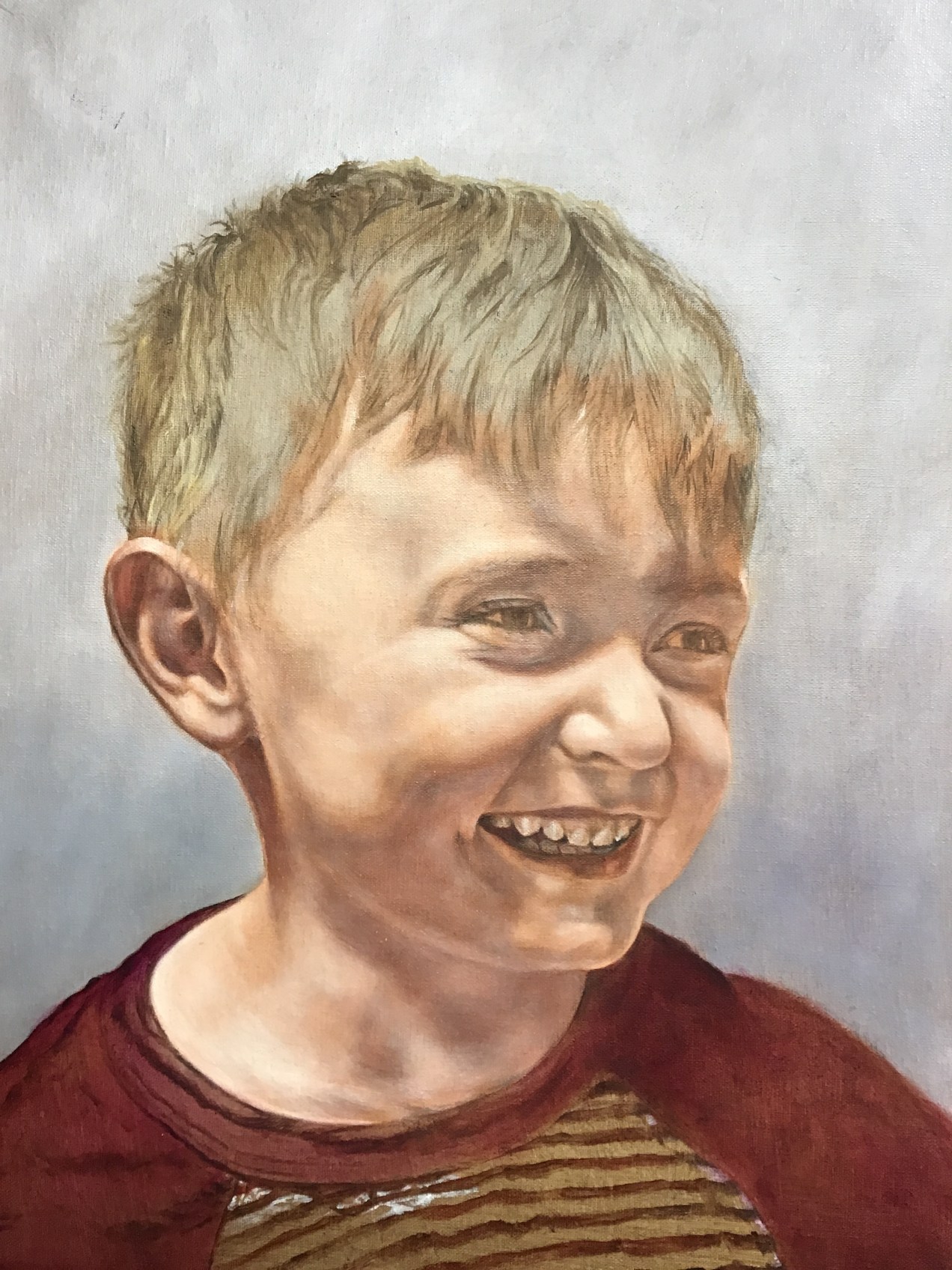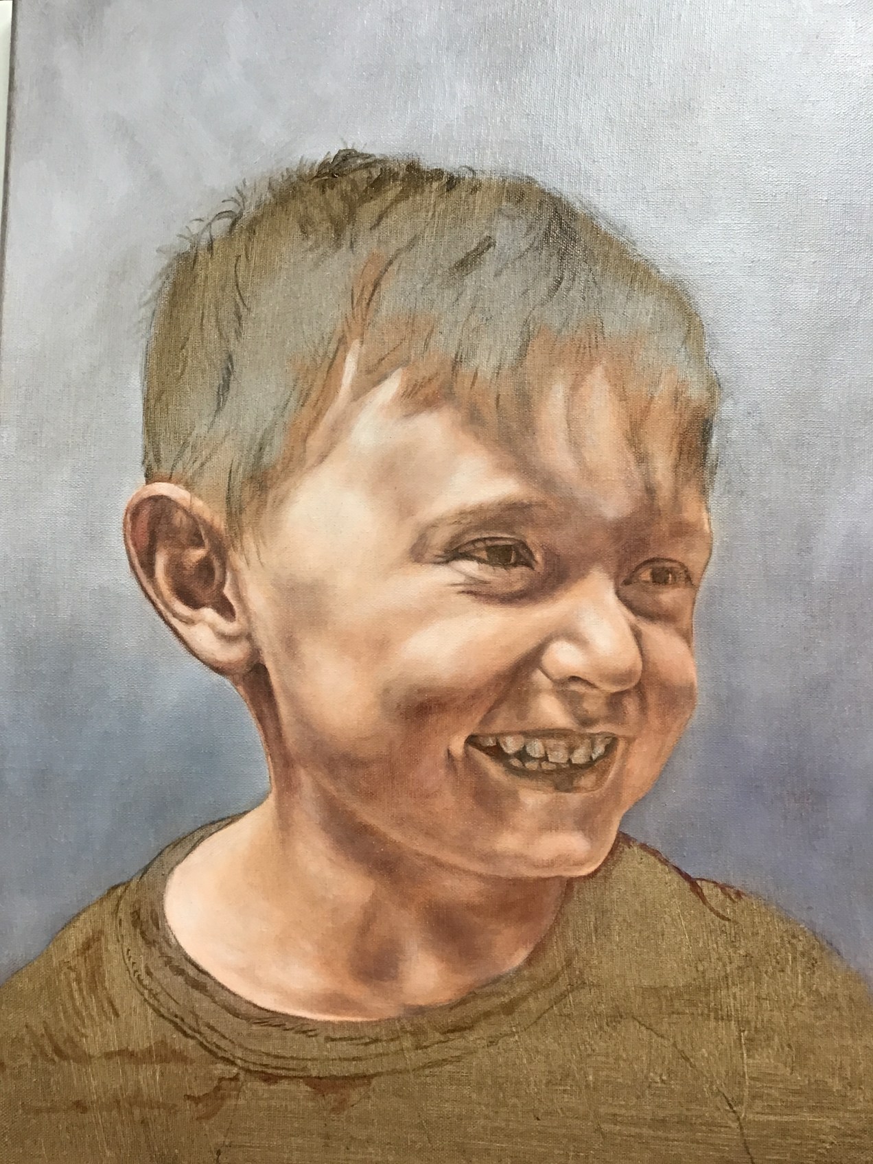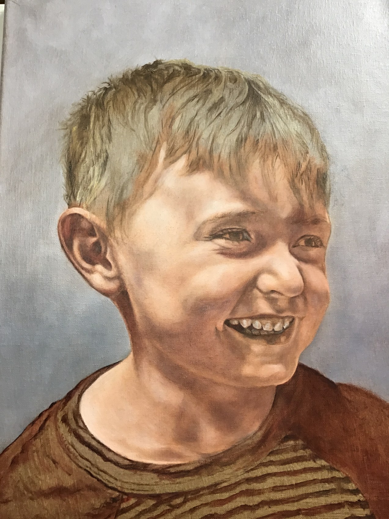 I always want my portraits to come out well. Sometimes it seems so easy. Other times, not so much. I was not pleased with the one I did of his brother and so I will begin that again as soon as I finish this. I chose much better images. Both have a lot of sunlight. Also, they are showing their best smiles. The format is twelve by sixteen. That is close to life size. I will do quite a few more layers of flesh and maybe one more on the background. Photos always seem like X-rays so they don’t show the true surface. I wish I knew how to fix that. Today, I also worked on a large painting that I began about a year ago. Time goes so fast. In that time I did several very small paintings. I am still having trouble seeing well. I can’t get lenses that are as helpful as what I had before the cataract surgery. That is frustrating because the doctor assured me it would be better or at least as good, and it is not.. anyway, This is one of my series of mountain stream paintings. Almost the entire background is waterfall. Little bubbling brook waterfalls. I really enjoy painting these even though I cannot seem to paint a landscape without a portrait in front of the landscape. I’m feeling like I want to spend more time painting and less time doing other stuff. I even told my doctor to limit tests to the very most important ones. I don’t like to be cold but winter gives me time to hibernate and get mor art done. I am doing a very large format painting of one of my daughters. The drawing is a real challenge.so, for now, that is my update. Enjoy your art efforts. I am so thankful for this. Apt TMH. Hugs, Diana